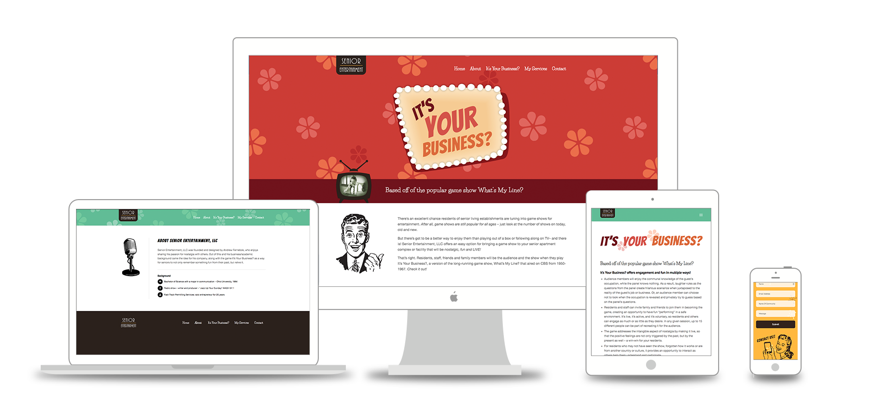 Senior Entertainment, LLC was founded and designed by Andrew Fernebok, who enjoys sharing his passion for nostalgia with others. Out of this and his business/academic background came the idea for his company, along with the game It’s Your Business? as a way for seniors to not only remember something fun from their past, but relive it.
